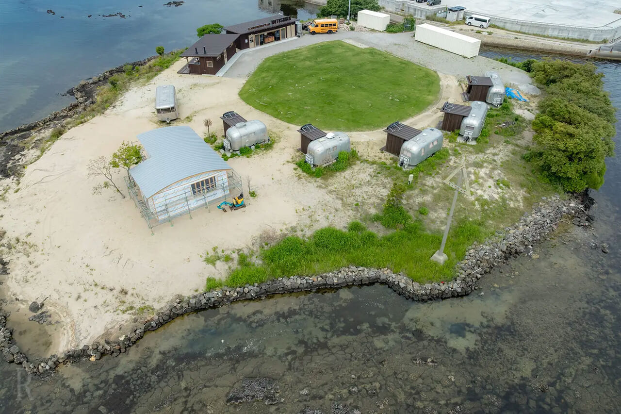 島根県の穏やかな海に浮かぶ無人島に誕生した「EXTRAORDINARY PLACE MOTOSHIMA(エクストラオーディナリー プレイス モトシマ)」。米子空港から約15分という好アクセスでありながら、豊かな自然と美しい海に囲まれた特別なロケーションが魅力のグランピングリゾートです。