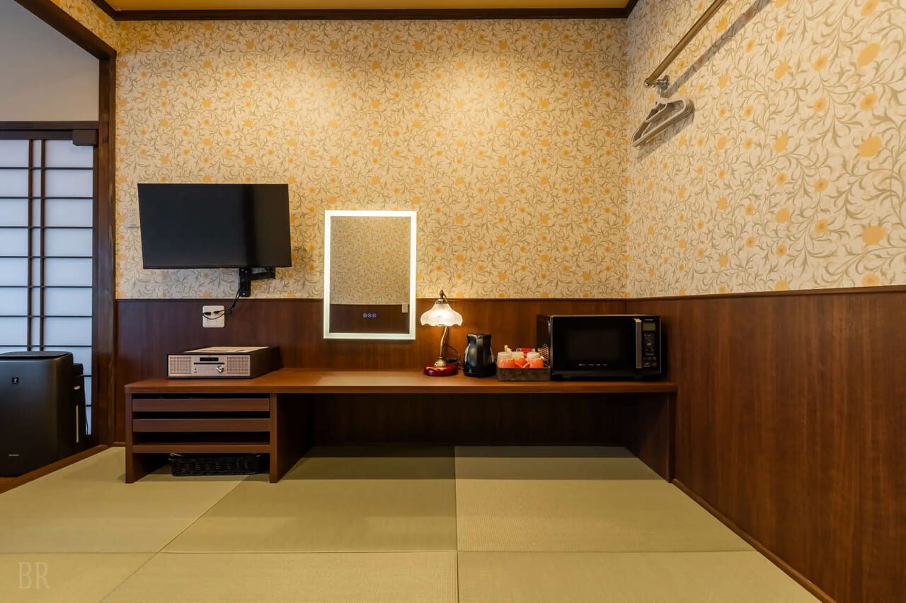 建物は古民家をリフォームしたホテルで、昔ながらの風情を残しつつ、快適性にも配慮した空間設計。