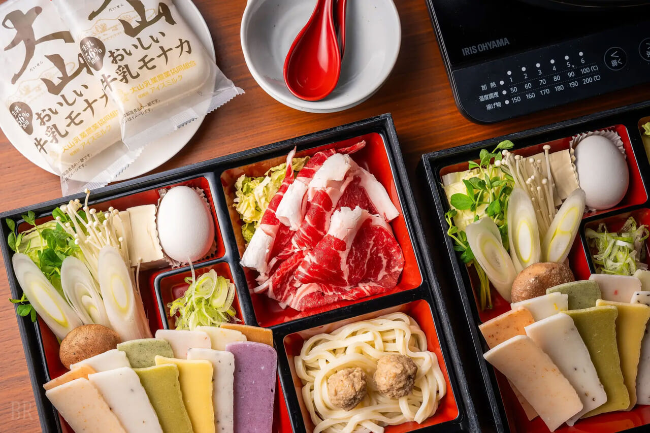 名物・12種類の餠しゃぶ+東伯牛鍋セット