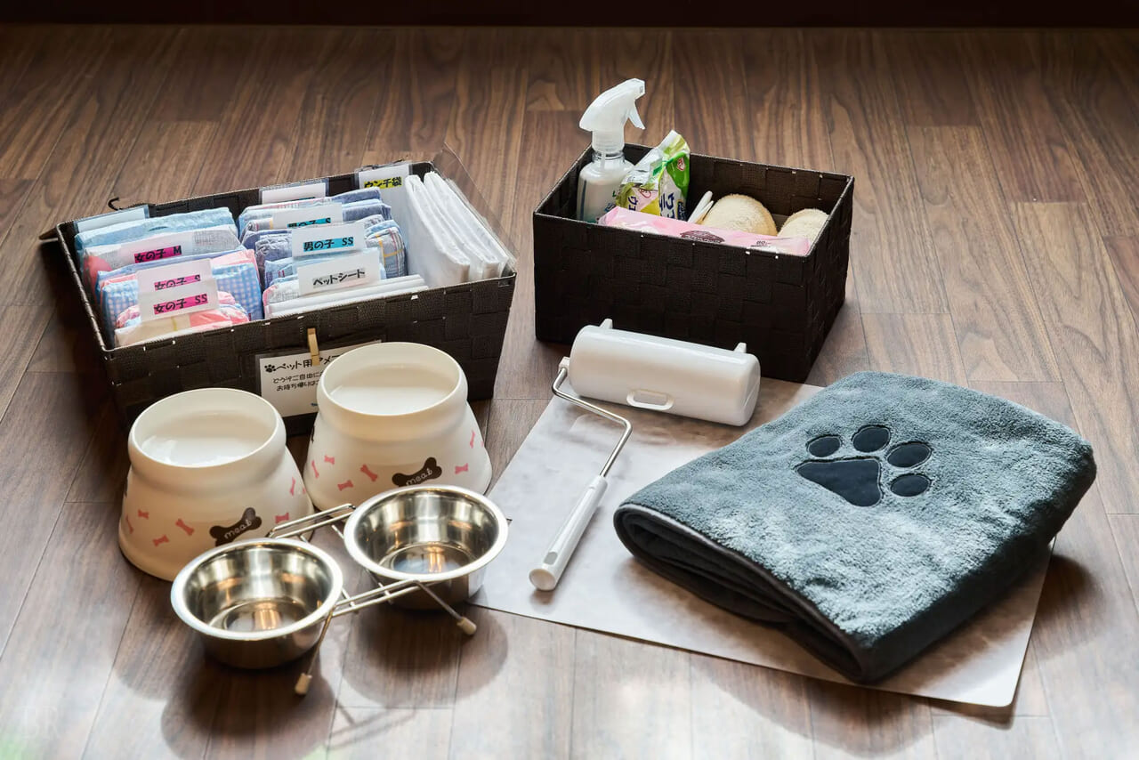 ペットシートや食器など、滞在に必要なペット用アメニティを完備しています。荷物を最小限に抑えられるため、遠方からの旅行や、ペットとの旅行が初めての方も安心です。「ペットと泊まる」を前提に考えられた細やかな配慮が、快適な滞在を支えます。