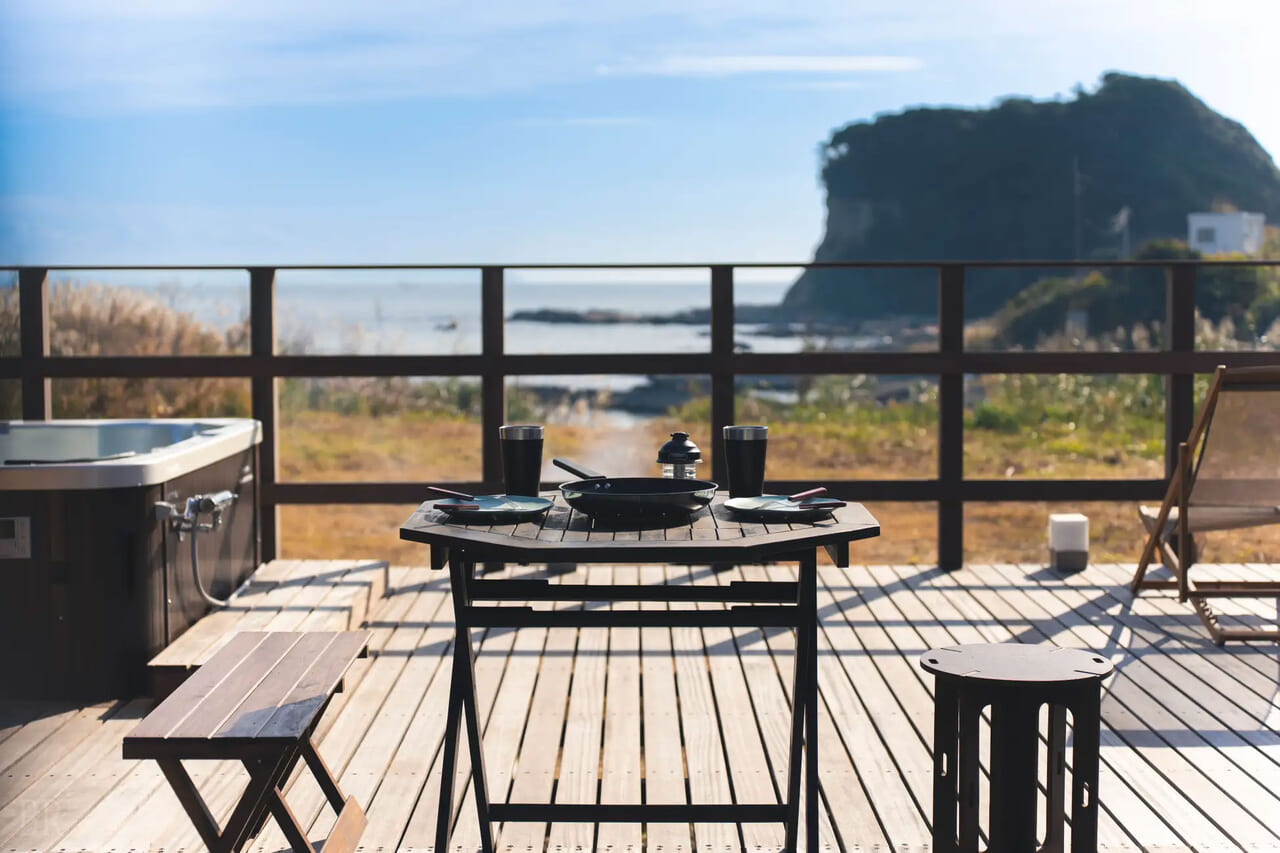 1.海まで徒歩30秒。三浦半島の海を独占するプライベートビーチグランピング
