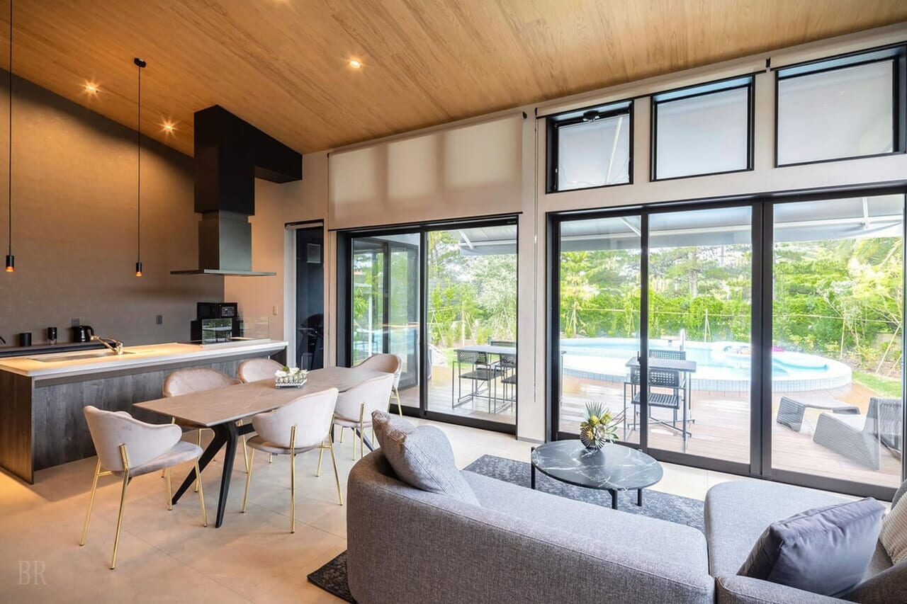 千葉県勝浦市の「ドッグオーベルジュ千葉勝浦 ~離れ 風月-FUGETSU~」は、《愛犬と共に“食”を楽しむ》をコンセプトとした、贅沢な時間を提供する宿泊施設です。興津海浜公園内の2,200㎡という広大な敷地に、わずか4棟のみが贅沢に配置されており、各棟が広々としたプライベート空間を提供します。